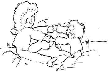 1. 當身體搖擺至某一方向時,教師教導有發聲能力的學生,鼓勵他一起說:「向左搖、向右搖!」 2. 如學生欠缺安坐的能力,可讓他躺臥在水床上,教師用按摩油塗在學生身體,替他做按摩活動,再加上水床之浮動感,使學生能放